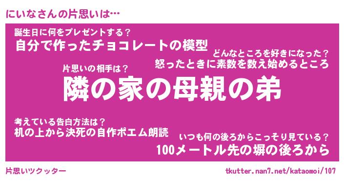 | ヘコむあだ名 | 『にいにー』『つくし』『にい太郎』 |