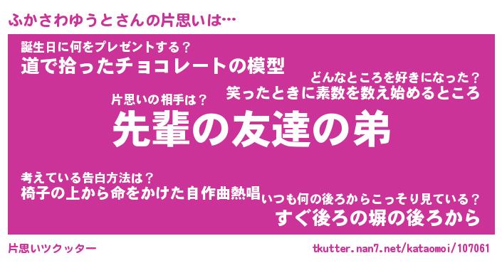 | 胡散臭い通販商品みたいなあだ名 | 『モテモテ間違いなし霊験あらたかなお札…その名も「ふかさわゆうと」』 |