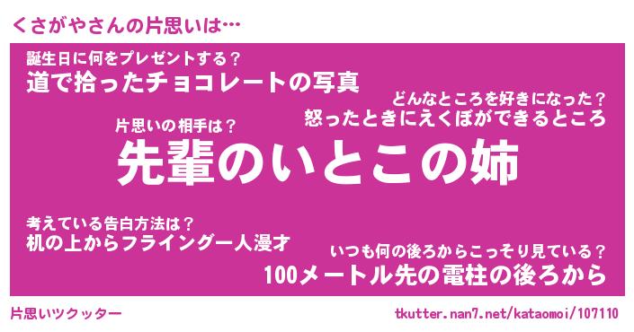| ヘコむあだ名 | 『くさにゅー』『豆乳』『くさぷりん』 |