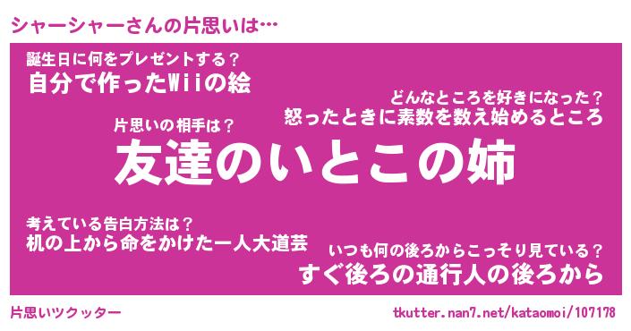 | ヘコむあだ名 | 『シャもー』『牛乳』『シャぷりん』 |