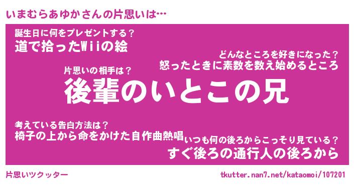 | 意味不明あだ名 | 『ペロリンいまむらあゆか』 |