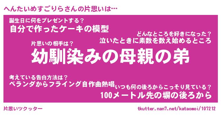 | 胡散臭い通販商品みたいなあだ名 | 『必ず成功するブレスレット…その名も「へんたいめすごりら」』 |