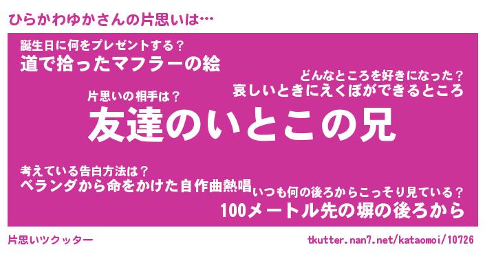 | 女子向けラノベタイトル風あだ名 | 『誰かこのひらかわゆかを説明してください! ~契約から始まるウェディング~』 |