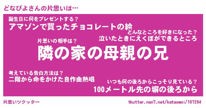 | 意味不明あだ名 | 『ペロリンどなぴよ』『永久保存どなぴよ』 |
