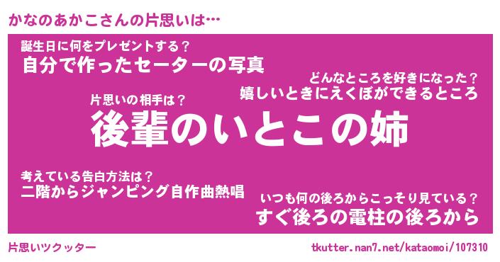 | ヘコむあだ名 | 『かなもー』『つくし』『かな太郎』 |