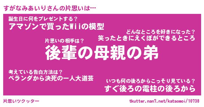 | 恥ずかしいあだ名 | 『プリティーすがなみあいり』『すがちん』 |