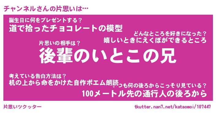 | ファンタジー風あだ名 | 『チャフェル』『エターナルチャンネルー』 |