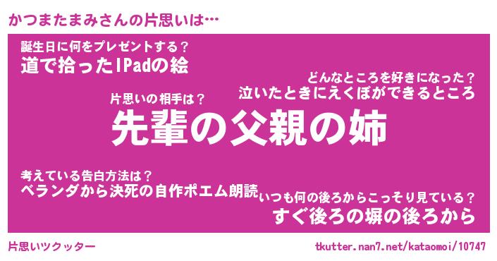 | 胡散臭い通販商品みたいなあだ名 | 『モテモテ間違いなしブレスレット…その名も「かつまたまみ」』 |