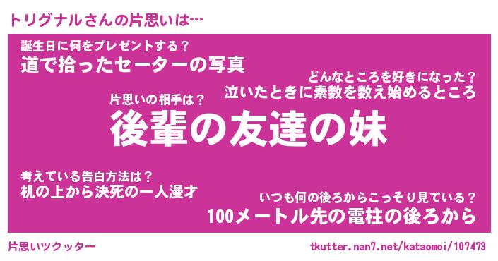 | 胡散臭い通販商品みたいなあだ名 | 『モテモテ間違いなし霊験あらたかなお札…その名も「トリグナル」』 |