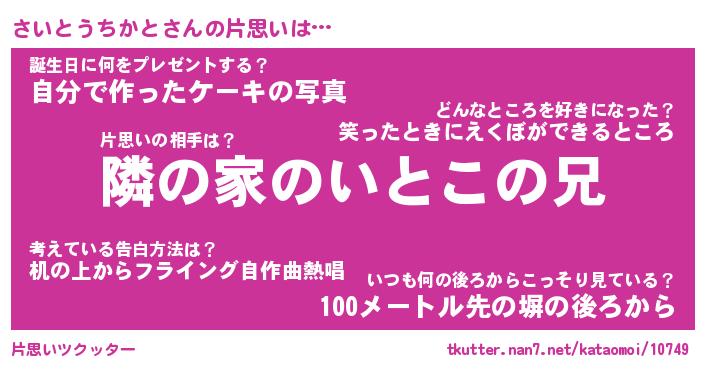 | 男性向けラノベタイトル風あだ名 | 『さいとうちかとの憂鬱』 |
