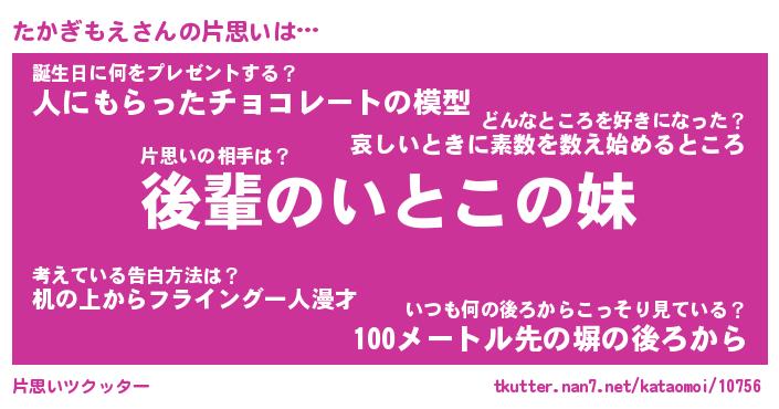 | 女子向けラノベタイトル風あだ名 | 『誰かこのたかぎもえを説明してください! ~契約から始まるウェディング~』 |