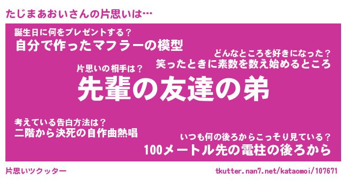 | ヘコむあだ名 | 『たじもー』『つくし』『たじお』 |
