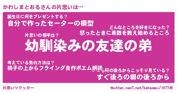 | 男性向けラノベタイトル風あだ名 | 『かわしまとおるの憂鬱』 |