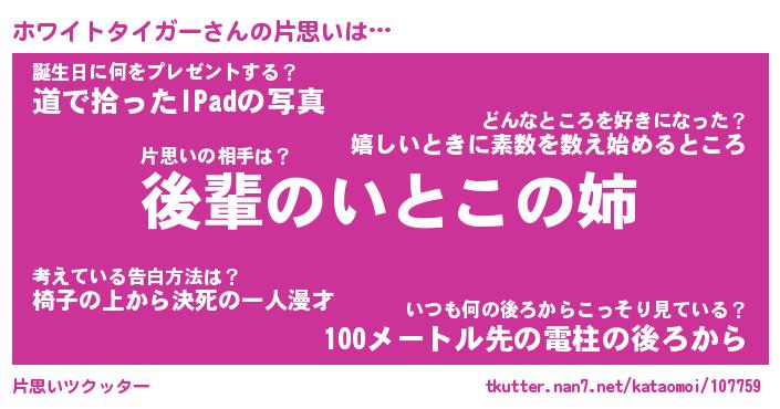 | 恥ずかしいあだ名 | 『プリティーホワイトタイガー』 |