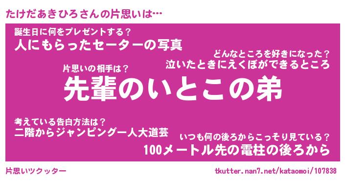 | ヘコむあだ名 | 『たけもー』『酢こんぶ』 |