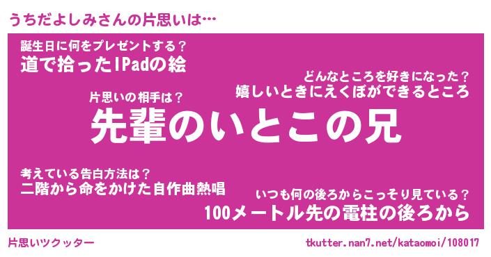 | ピコ太郎風あだ名 | 『ウコ五郎』『ピウ史郎』『ウチ一郎』 |