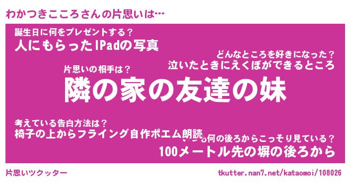 | ヘコむあだ名 | 『わかっふぃ~』『つくし』 |
