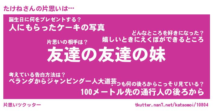| ヘコむあだ名 | 『たけっふぃ~』『つくし』 |