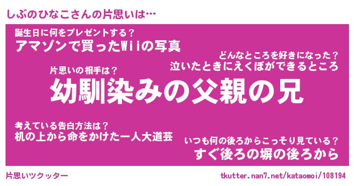 | ヒーロー風カッコイイあだ名 | 『スーパーシブノヒナコ』『天弓騎士シブ』 |