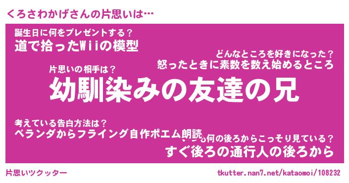 | 胡散臭い通販商品みたいなあだ名 | 『必ず成功する霊験あらたかなお札…その名も「くろさわかげ」』 |