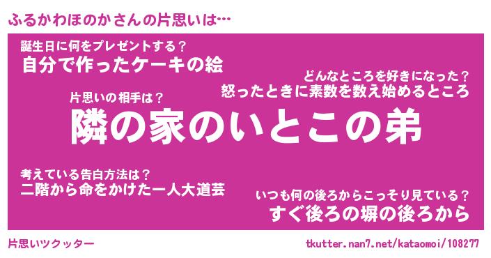 | 胡散臭い通販商品みたいなあだ名 | 『必ず成功する水晶球…その名も「ふるかわほのか」』 |