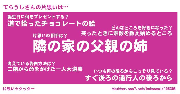 | 男性向けラノベタイトル風あだ名 | 『てらうしの憂鬱』 |