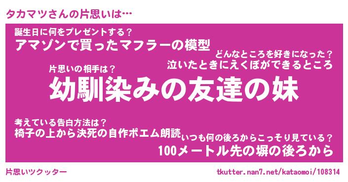 | 男性向けラノベタイトル風あだ名 | 『タカマツの憂鬱』 |