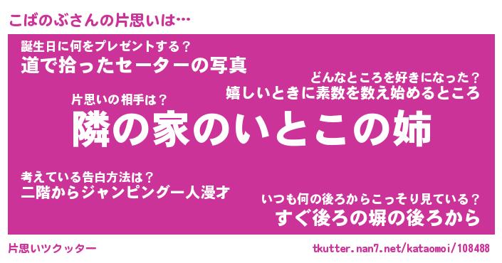 | 胡散臭い通販商品みたいなあだ名 | 『モテモテ間違いなし霊験あらたかなお札…その名も「こばのぶ」』 |