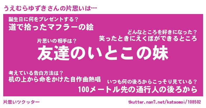| ヘコむあだ名 | 『うえにゅー』『牛乳』『うえっちょ』 |