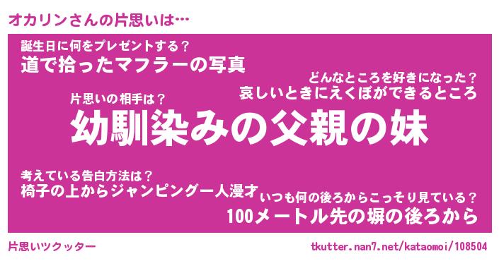 | ファンタジー風あだ名 | 『オカフェル』『エターナルオカリンー』 |