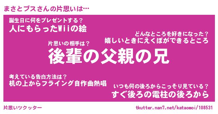 | 2回繰り返すあだ名 | 『まさまさ』『ままささ』『ぬれぬれ』 |