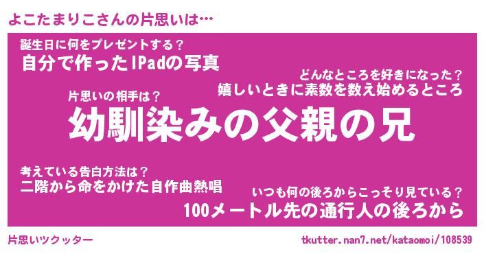 | 男性向けラノベタイトル風あだ名 | 『よこたまりこの憂鬱』 |