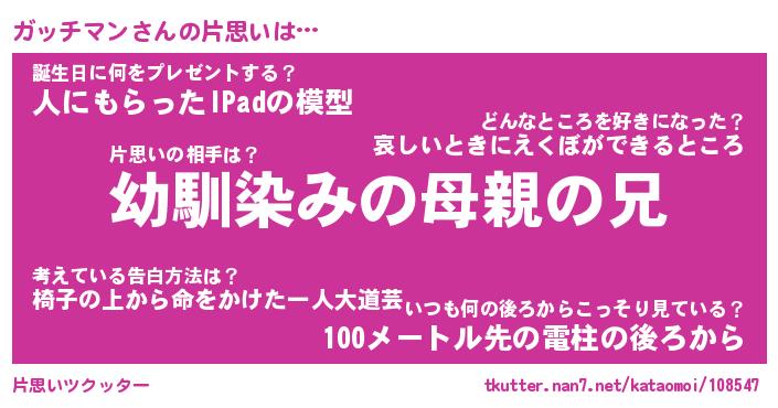 ガッチマンさんの片思いをツクッター!