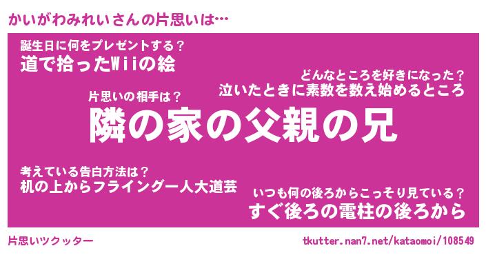 | 胡散臭い通販商品みたいなあだ名 | 『必ず成功する水晶球…その名も「かいがわみれい」』 |