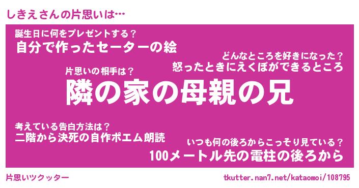 | 男性向けラノベタイトル風あだ名 | 『しきえの憂鬱』 |