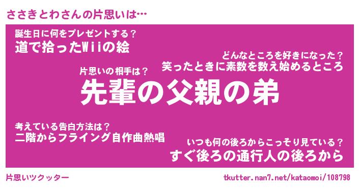 | 胡散臭い通販商品みたいなあだ名 | 『モテモテ間違いなしブレスレット…その名も「ささきとわ」』 |