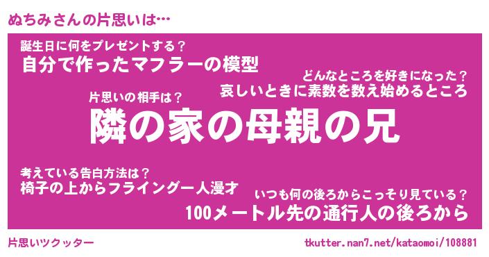 | 2回繰り返すあだ名 | 『ぬちぬち』『ぬぬちち』『うねうね』 |
