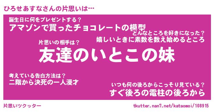 | 胡散臭い通販商品みたいなあだ名 | 『億万長者になれる水晶球…その名も「ひろせあすな」』 |