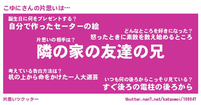 | ヘコむあだ名 | 『こゆっふぃ~』『牛乳』『こゆっぺ』 |