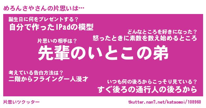| ヘコむあだ名 | 『めろもー』『つくし』『めろっちょ』 |