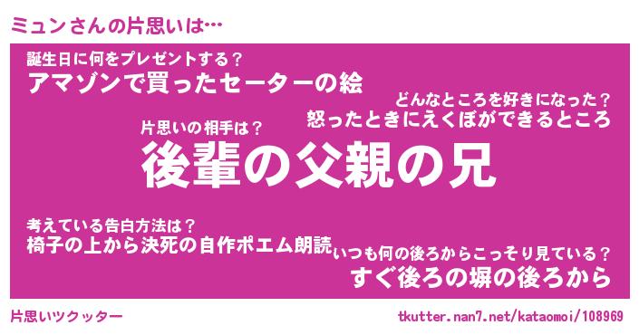 | ヘコむあだ名 | 『ミュにゅー』『なまこ酢』 |