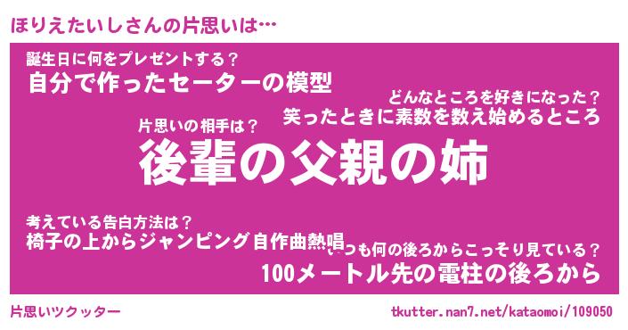 | 意味不明あだ名 | 『ペロリンほりえたいし』 |