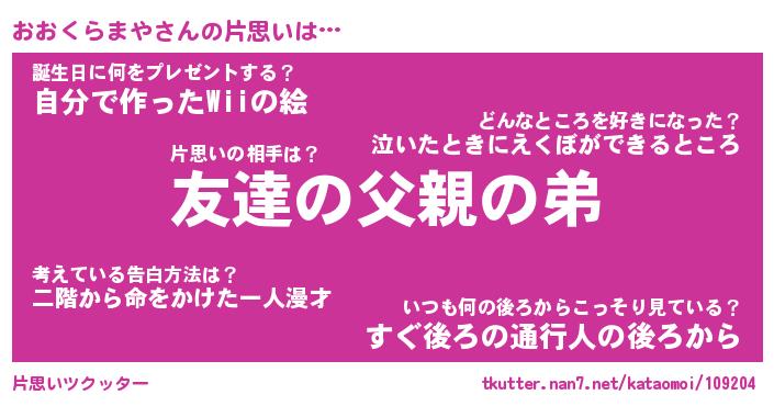 | ヘコむあだ名 | 『おおにゅー』『つくし』『おおを』 |