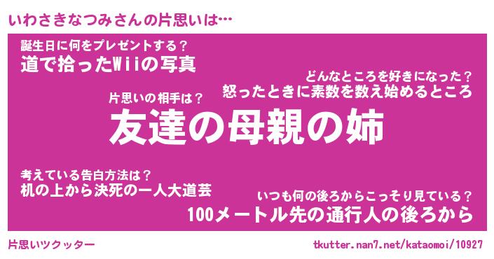 | 胡散臭い通販商品みたいなあだ名 | 『億万長者になれるブレスレット…その名も「いわさきなつみ」』 |