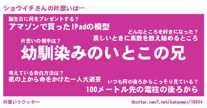 | 胡散臭い通販商品みたいなあだ名 | 『必ず成功する水晶球…その名も「ショウイチ」』 |