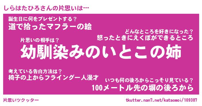 | 胡散臭い通販商品みたいなあだ名 | 『必ず成功する水晶球…その名も「しらはたひろ」』 |