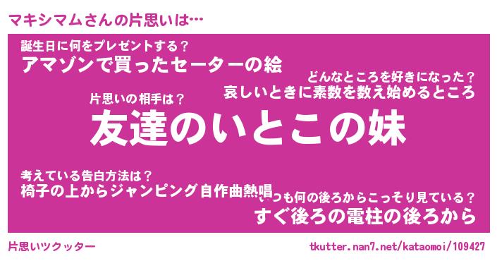 | ヘコむあだ名 | 『マキもー』『なまこ酢』『マキを』 |