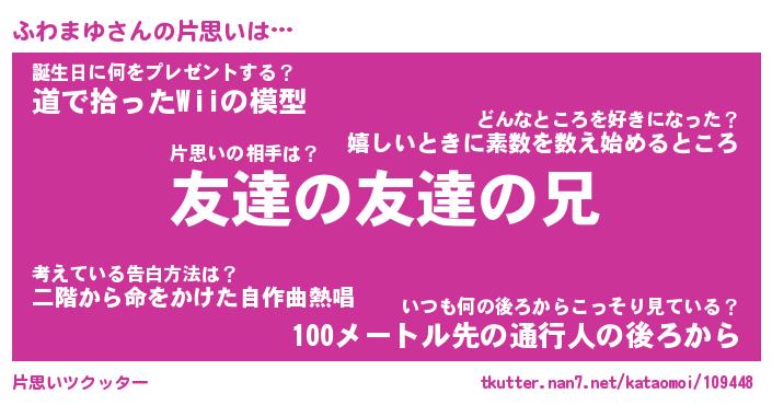 | ポケモン風あだ名 | 『フワチュウ』『フワマダネ』 |