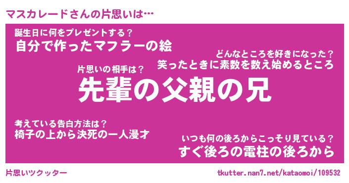 | 胡散臭い通販商品みたいなあだ名 | 『モテモテ間違いなし水晶球…その名も「マスカレード」』 |