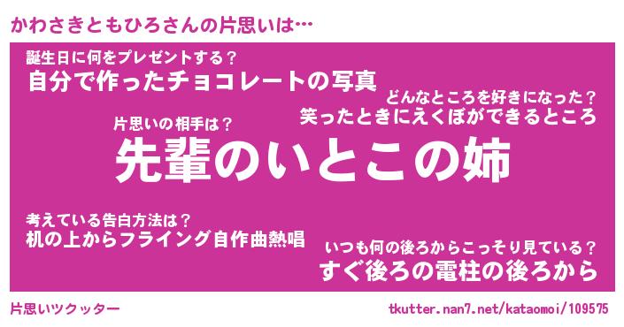 | 胡散臭い通販商品みたいなあだ名 | 『モテモテ間違いなし霊験あらたかなお札…その名も「かわさきともひろ」』 |